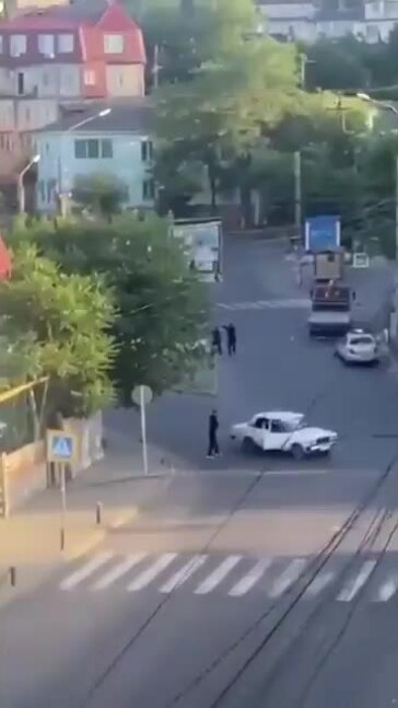 Nhóm tay súng nã đạn vào xe tuần tra của cảnh sát. Video: Telegram/Baza
