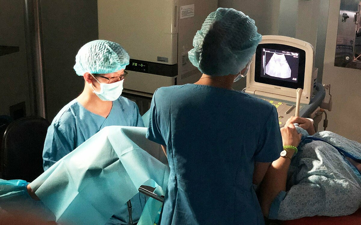 Bác sĩ Vũ thủ thuật cho bệnh nhân. Ảnh: Bệnh viện cung cấp
