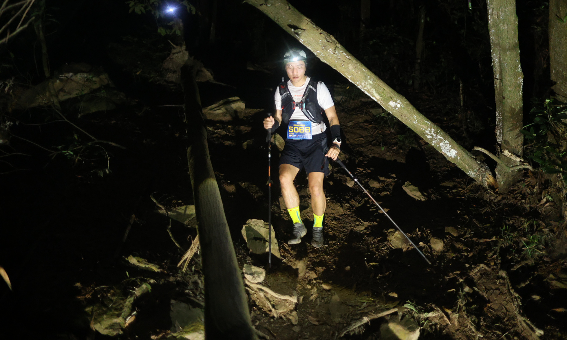 Địa hình dốc,trơn trượt và ánh sáng kém,nếu chạy ban đêm,là những thử thách dễ thấy nhất với runner chạy trail. Ảnh: Vietnam Ultra Trail