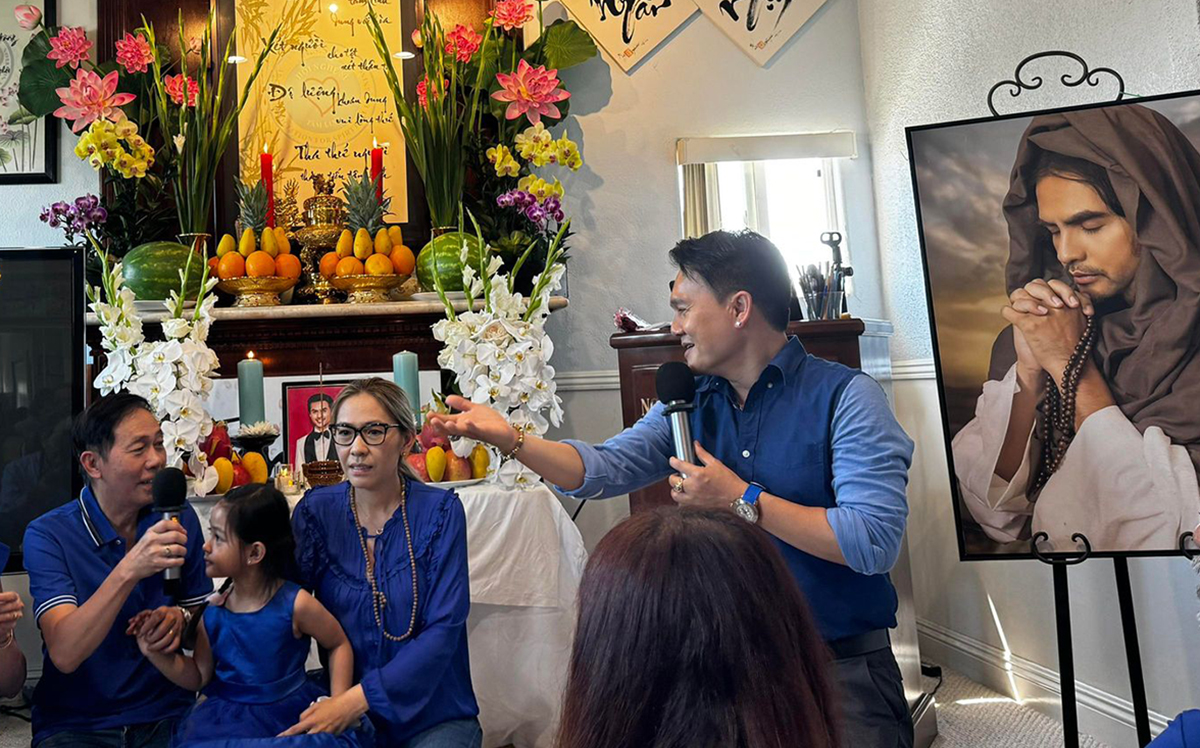 Gia đình tổ chức lễ chung thất Đức Tiến tại trụ sở Hội Nghệ sĩ Tâm linh ở bang California,chiều 6/7 (giờ địa phương). Bố mẹ Bình Phương bay từ Texas qua cùng cô chuẩn bị đồ cúng,tiếp khách.