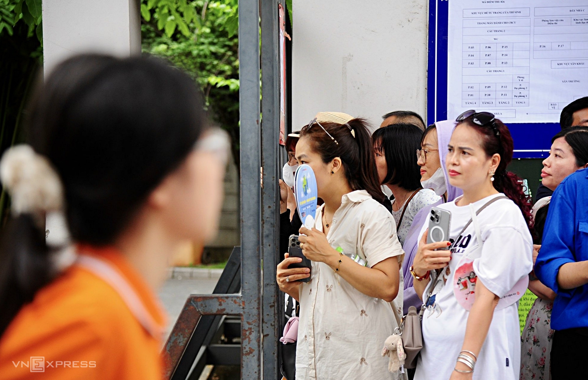 Phụ huynh ngóng con thi lớp 10 ở Hà Nội,tháng 6/2024. Ảnh: Duy Anh