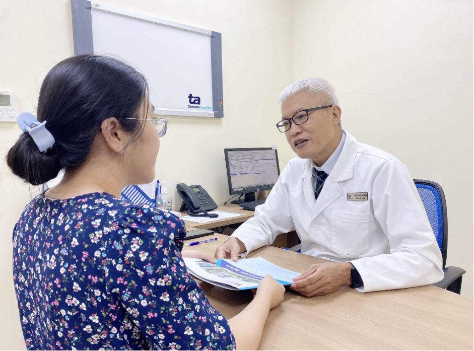 Bác sĩ Trông tư vấn cho một bệnh nhân về u mỡ. Ảnh minh họa: Bệnh viện Đa khoa Tâm Anh