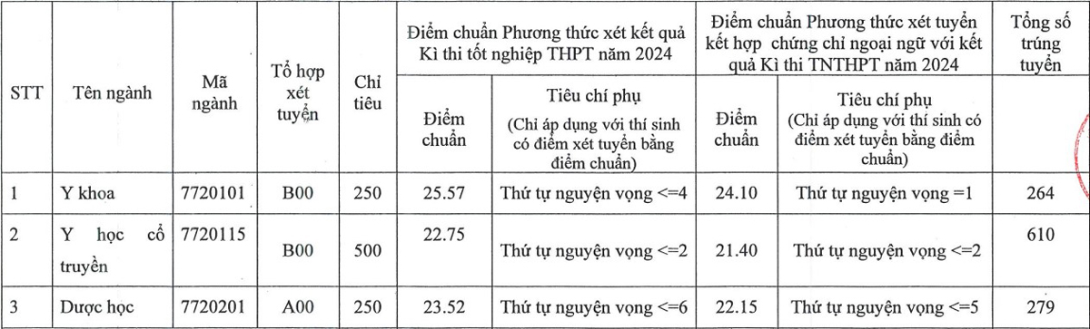 Năm 2024,Học viện Y Dược học cổ truyền tuyển 1.000 sinh viên,một nửa ở ngành Y học cổ truyền. Ngoài xét điểm thi tốt nghiệp,trường còn xét tuyển kết hợp điểm kỳ thi này với chứng chỉ ngoại ngữ.