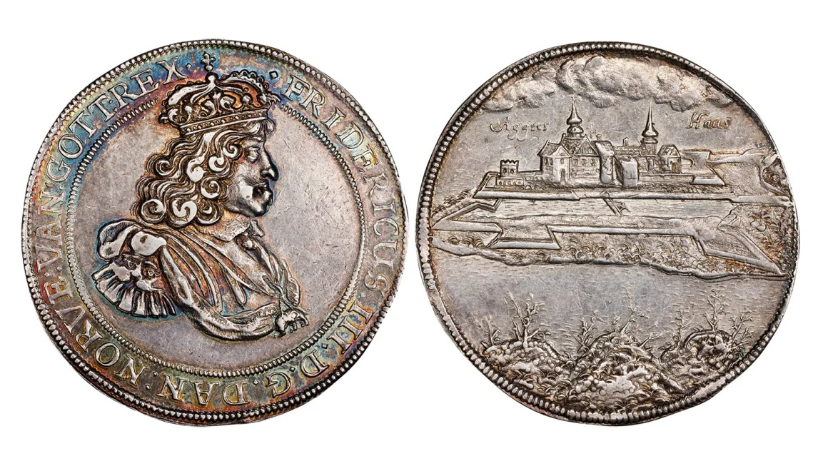 Đồng tiền có niên đại từ thế kỷ 17 của Vua Frederik trong bộ sưu tập. Ảnh: Stack's Bowers
