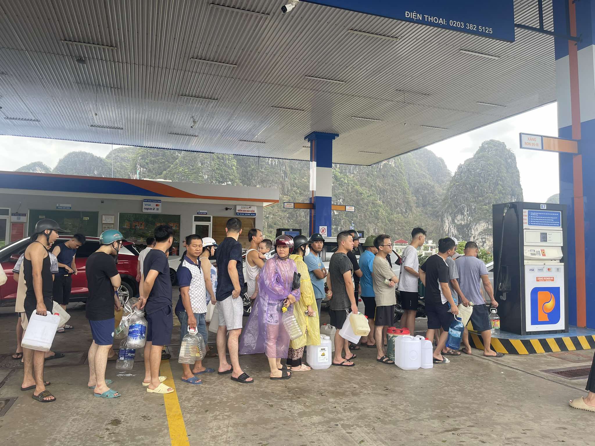 Theo một đại diện của Petrolimex,nhiều cửa hàng xăng dầu trên địa bàn Quảng Ninh chưa khắc phục sau bão,trong khi nhu cầu tăng. Do đó,tại các cửa hàng được mở cửa lại,lượng khách vào đông,nhiều thời điểm có thể phải xếp hàng. Tuy nhiên,ông cho biết hiện chỉ còn một số cây xăng bị thiệt hại nặng,dự kiến được khắc phục để hoạt động trở lại vào ngày mai.