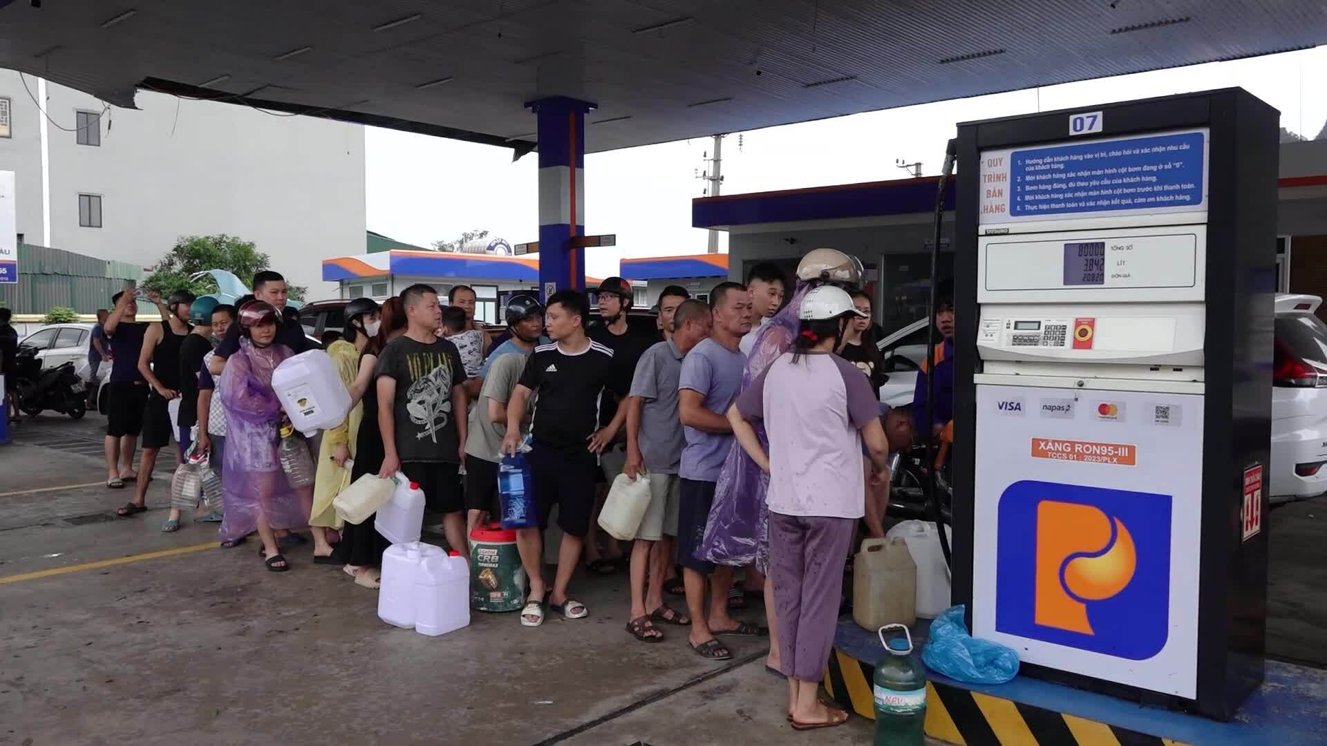 Sáng 8/9,hàng trăm người dân mang chai nhựa,can,đứng xếp hàng dài ở cửa hàng 125 - Petrolimex ở phường Hà Tu,thành phố Hạ Long để mua xăng dầu. Sau một ngày bị cắt điện toàn thành phố do bão Yagi,các cây xăng cũng tạm dừng hoạt động để đảm bảo an toàn.