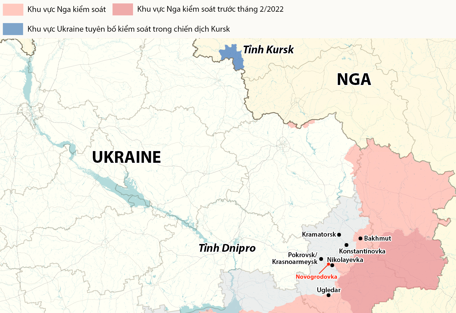 Thành phố Novogrodovka,được Ukraine gọi là Novohrodivka,có hơn 14.000 cư dân sinh sống trước khi xung đột Nga - Ukraine bùng phát. Nó cách đô thị chiến lược Pokrovsk của Ukraine khoảng 20 km.