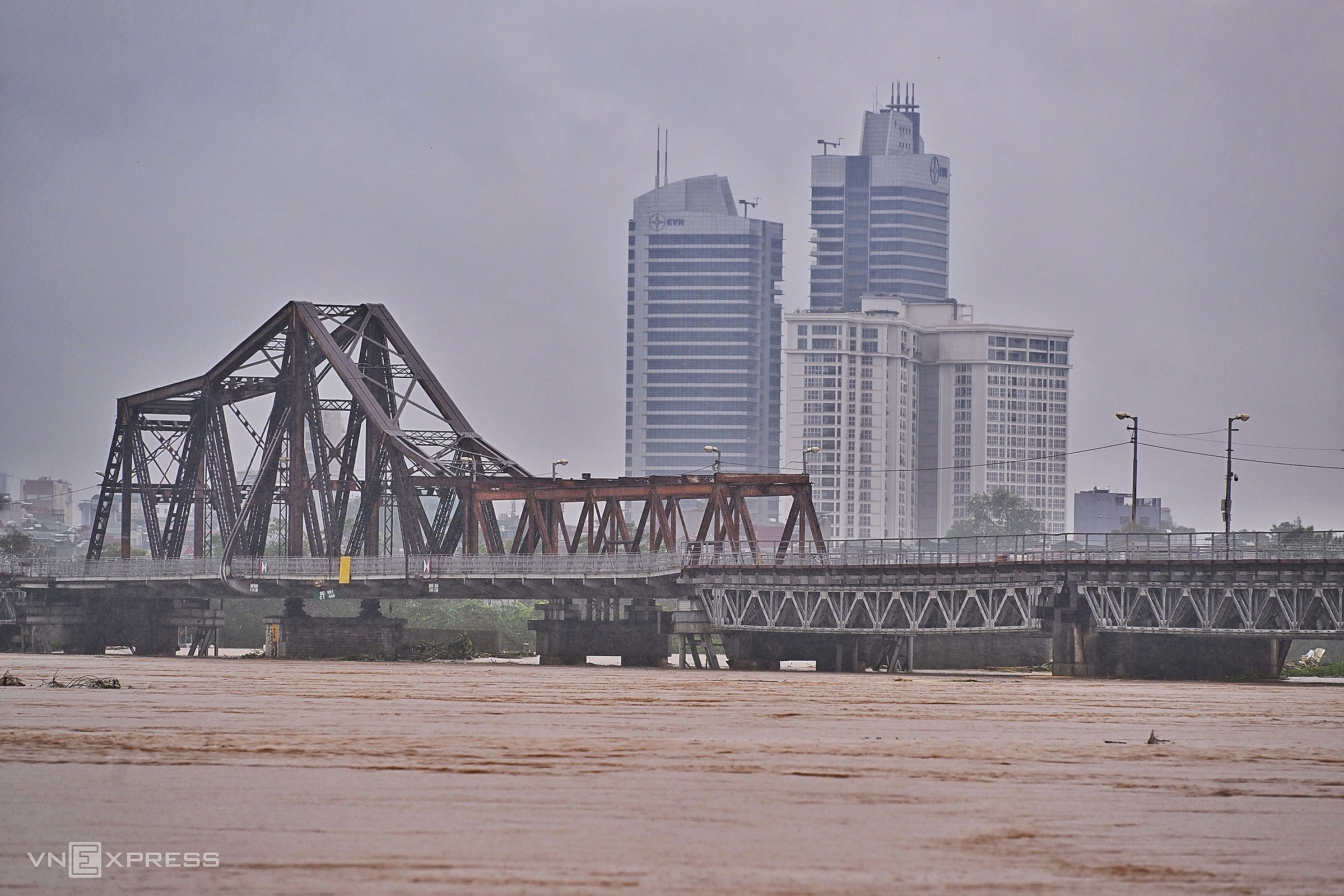 Nước sông Hồng dưới chân cầu Long Biên,Hà Nội chiều 11/9. Ảnh: Giang Huy