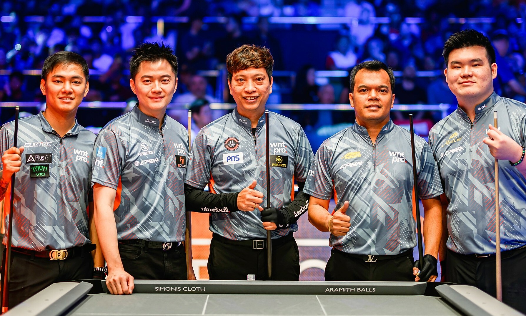 Dương Quốc Hoàng (giữa) cùng đội tuyển châu Á ở Reyes Cup 2024 đều nằm trong danh sách bị WPA cấm thi đấu. Ảnh: Matchroom