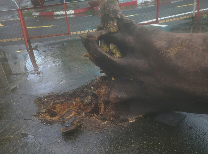 Gần 10h,trong cơn giông lốc mạnh,cây phượng nằm trong trường tiểu học Nguyễn Thị Định,phường Tân Thới Nhất,bất ngờ bật gốc ngã sập hàng rào. Ôtô của tài xế chạy xe công nghệ đậu cạnh đó bị thân cây đường kính hơn 50 cm đè trúng làm sập trần. Nhiều cành nhánh làm vỡ cửa kính,móp méo phần khung xe.