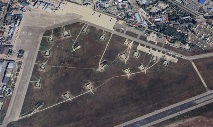 Trận địa Patriot ở sân bay Zhulyany tại thủ đô Kiev,Ukraine,trong ảnh vệ tinh công bố ngày 27/10. Ảnh: Google Earth
