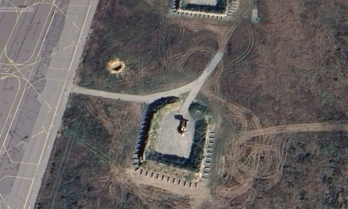 Hố đạn gần công sự chứa bệ phóng Patriot ở sân bay Zhulyany,Kiev,Ukraine trong ảnh vệ tinh công bố ngày 27/10. Ảnh: Google Earth