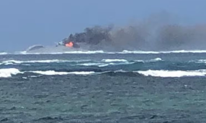 Tàu Manawanui bốc cháy và chìm ngoài khơi đảo Upolu sáng 6/10. Video: X/Davepoole