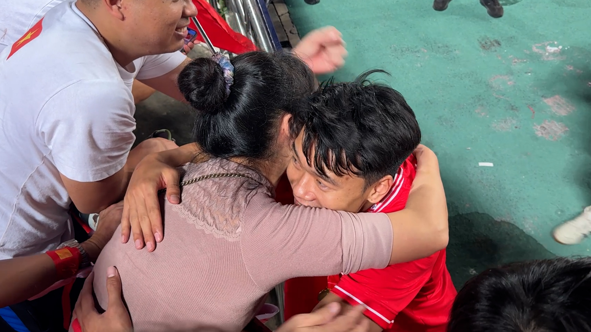 Bangkok- Mẹ của Nguyễn Thành Chung, Đỗ Duy Mạnh... nán lại sân Rajamangala để chúc mừng đội tuyển Việt Nam sau trận lượt về chung kết ASEAN Cup 2024 tháng Thái Lan, tối 5/1.