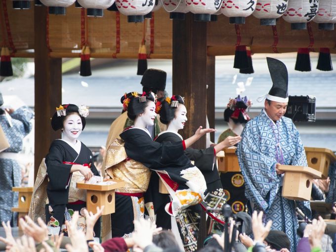 Các maiko ném đậu trong lễ hội ở Kyoto. Ảnh: Nippon