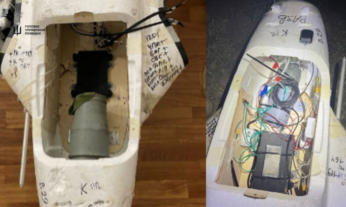 "Đối phương bắt đầu trang bị đầu đạn nổ mảnh OFBCh-2.5 và đầu nổ xuyên phá KZ-6 cho máy bay không người lái (UAV) Gerbera,vốn chỉ đóng vai trò mồi nhử trong các đòn không kích trước đây. Đầu đạn được kích hoạt thông qua rơ le bán dẫn RUICHI SSR-10DD kết nối với hệ thống điều khiển bay",GUR cho hay.