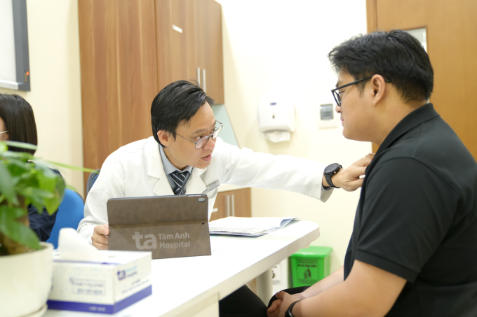 Bác sĩ Ngọc kiểm tra tình trạng sức khỏe cho người bệnh bị béo phì. Ảnh: Bệnh viện Đa khoa Tâm Anh