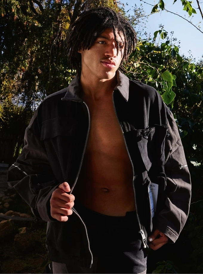 Henry Samuel diện áo khoác,quần jeans thuộc dòng sản phẩm kết hợp giữa hai thương hiệu Karl Lagerfeld và Atelier Reservé khi chụp ảnh tạp chí. Ảnh: Hunger Magazine