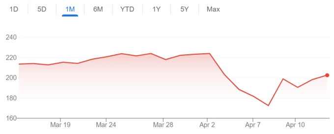 Sang tháng 4,mã này giảm liên tiếp 4 phiên từ ngày 2/4 - thời điểm ông Trump công bố chính sách thuế đối ứng và chỉ tăng trở lại khi Mỹ hoãn áp dụng 90 ngày với các đối tác thương mại,trừ Trung Quốc. Các nhà phân tích tại Morgan Stanley cho biết việc Mỹ miễn thêm thuế đối ứng với thiết bị điện tử sẽ giúp gánh nặng thuế hàng năm của Apple giảm từ 44 tỷ USD trước đó về 7 tỷ USD.