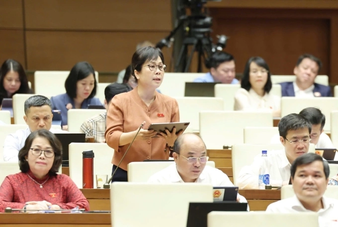Bà Nguyễn Vân Chi,Phó chủ nhiệm Ủy ban Kinh tế và Tài chính,tranh luận tại phiên thảo luận ngày 12/5. Ảnh: Giang Huy