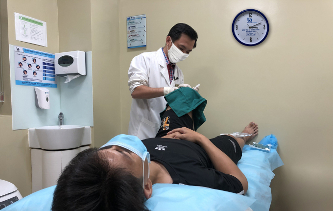 Bác sĩ tiêm khớp gối tại Bệnh viện Đa khoa Tâm Anh. Ảnh: Bệnh viện cung cấp