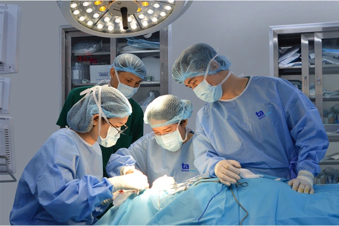 Bác sĩ Hằng (giữa) trong một ca phẫu thuật vá nhĩ. Ảnh minh họa: Bệnh viện Đa khoa Tâm Anh