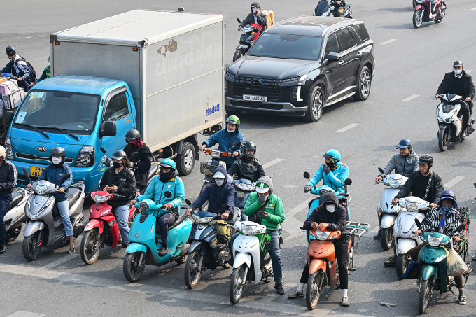Một số tài xế Xanh SM và Grab dừng đèn đỏ trên phố Chùa Bộc,Hà Nội vào tháng 1. Ảnh: Giang Huy