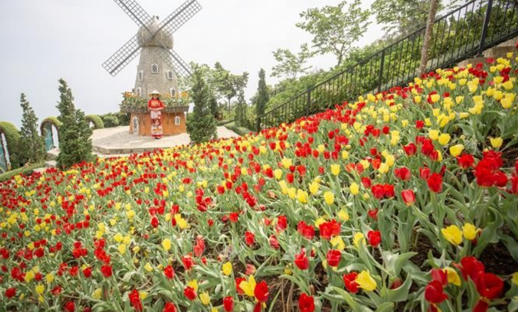 Anh Nguyễn Cao Li, du khách đến từ Bình Phước bày tỏ: “Mỗi lần đến đây đều có những chủ đề hoa khác nhau. Năm ngoái tôi thấy rất nhiều hoa coreopsis, năm nay lại là hoa tulip, để lại ấn tượng sâu sắc trong tôi”. , cứ như thể tôi đang đến thăm. Cảm giác như Châu Âu vậy.”