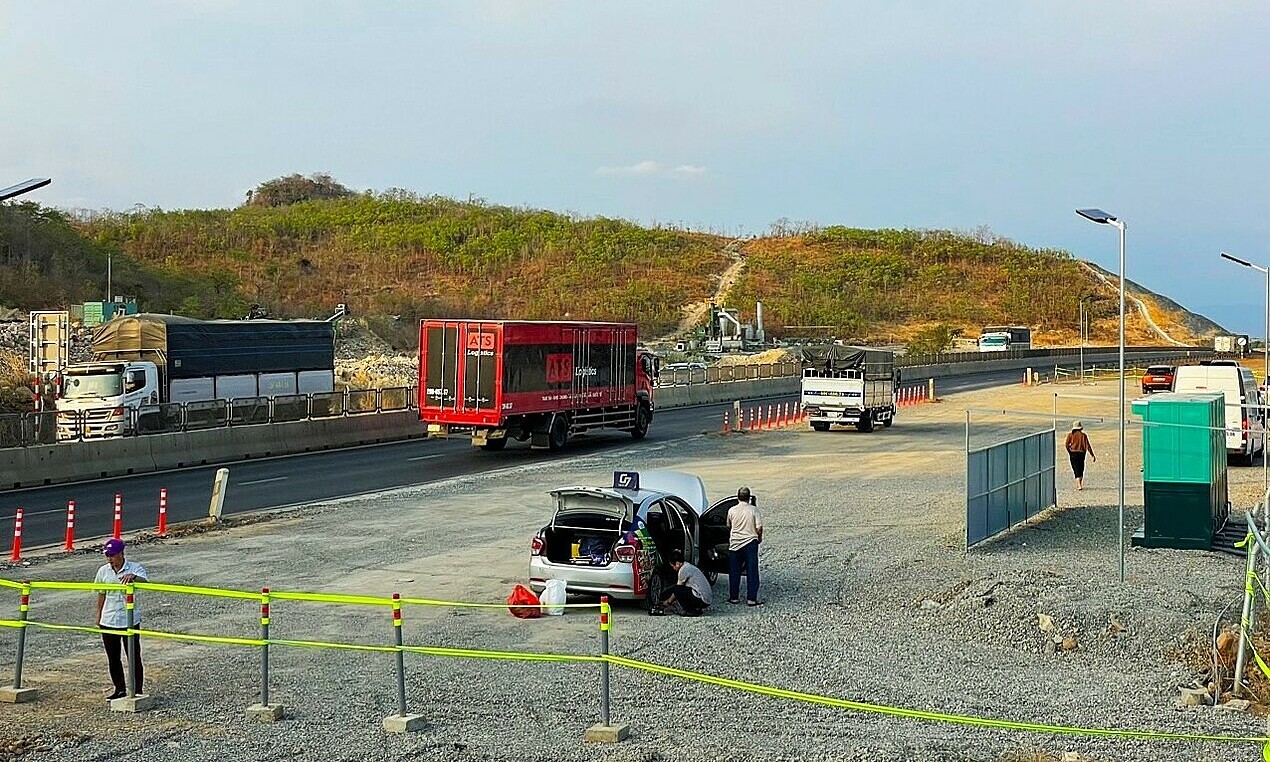 Trạm dừng nghỉ tạm trên cao tốc Vĩnh Hảo - Phan Thiết được xây dựng trong lúc chờ dự án,tháng 4/2024. Ảnh: Tư Huy