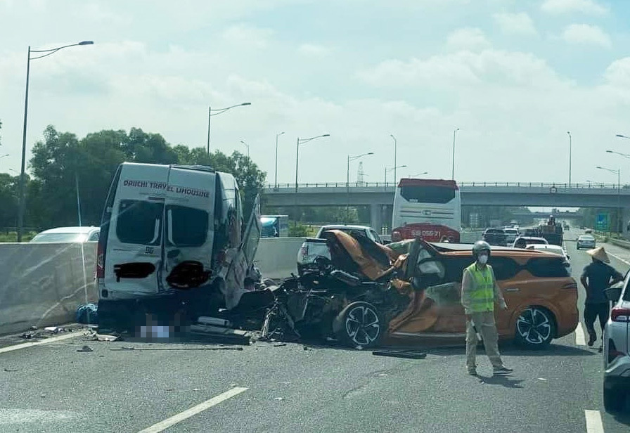 Hiện trường tai nạn trên cao tốc sáng 11/7. Ảnh: Xuân Hoa