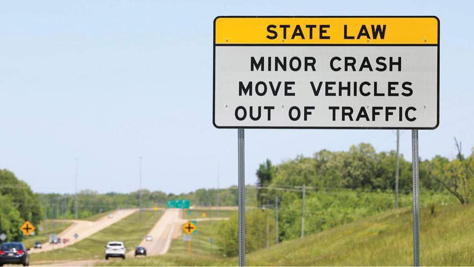 Bảng nhắc nhở tài xế phải di dời xe ra khỏi mặt đường các xe lưu thông đối các vụ va chạm nhỏ,bang Mississippi,Mỹ. Ảnh: MDOT