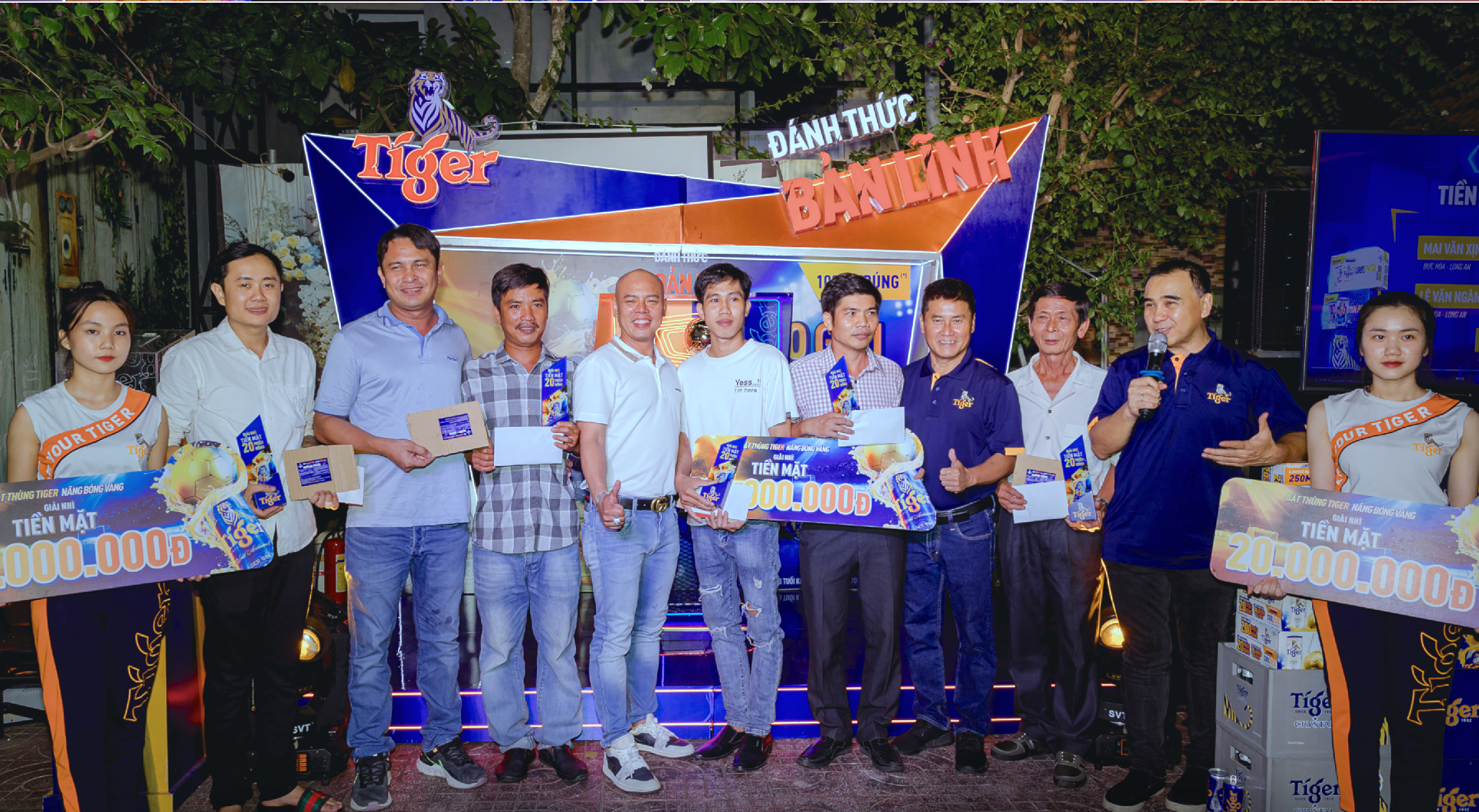 Kết thúc chuyến ghé thăm Long An cùng bà con trúng giải từ chương trình "Bật thùng Tiger - Nâng bóng vàng" của Quyền Linh là bữa tiệc trao thưởng cho những "bàn tay vàng" của giải thưởng 20 triệu đồng. Bữa tiệc cũng thu hút hàng trăm người yêu mến Quyền Linh và Tiger Beer đến tham gia.