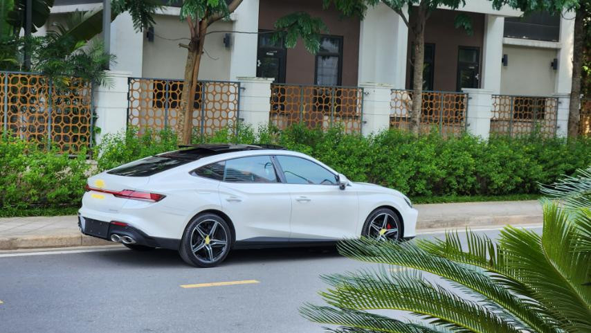Mẫu MG7 được che logo ở sau,la-zăng trên phố Hà Nội. Ảnh: Văn Xuyên