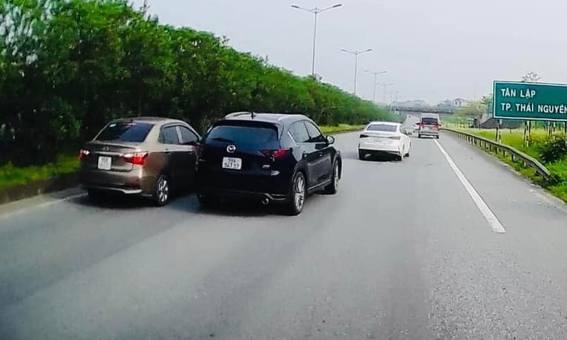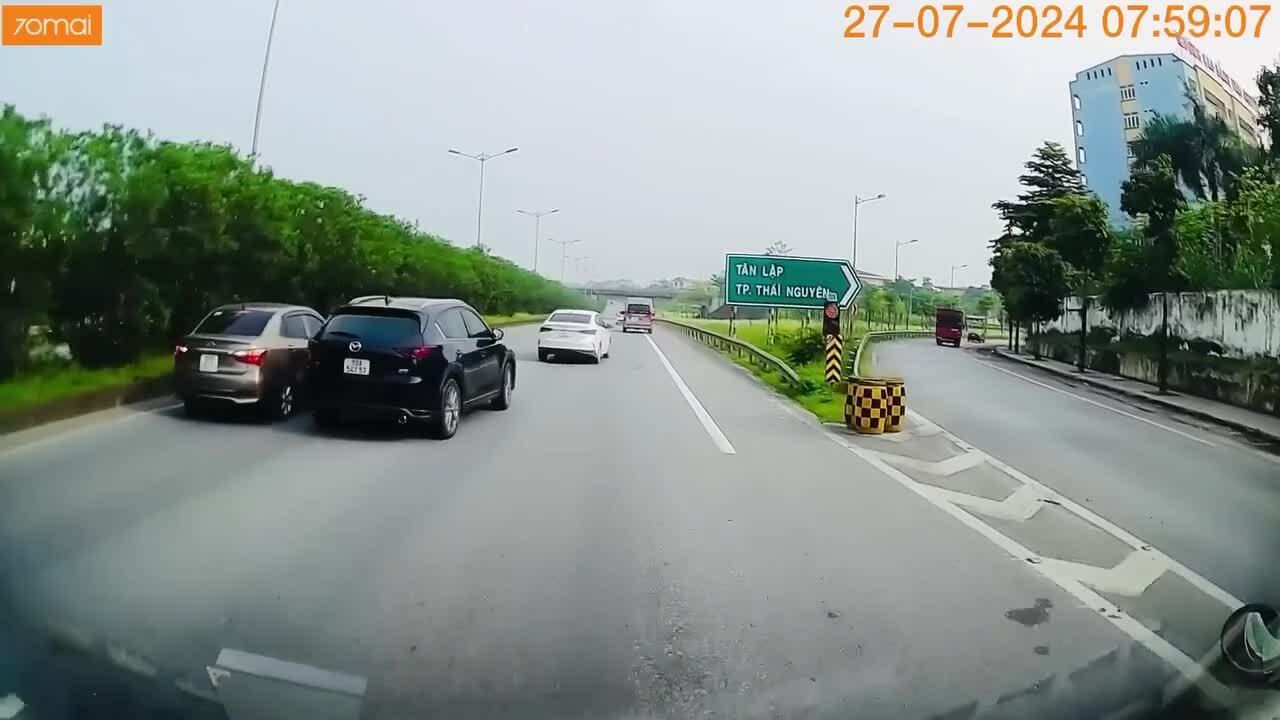 Đến đúng lối rẽ ra khu vực phường Tân Lập,thành phố Thái Nguyên,tiếng phanh rít lên cùng lúc chiếc Mitsubishi Triton ngoặt sang trái,đụng vào hông chiếc Xpander phía trước,leo lên dải phân cách. Cùng làn phía trước,hai ôtô khác kịp giảm tốc độ tránh chiếc i10 đang cài số lùi (đèn lùi sáng).