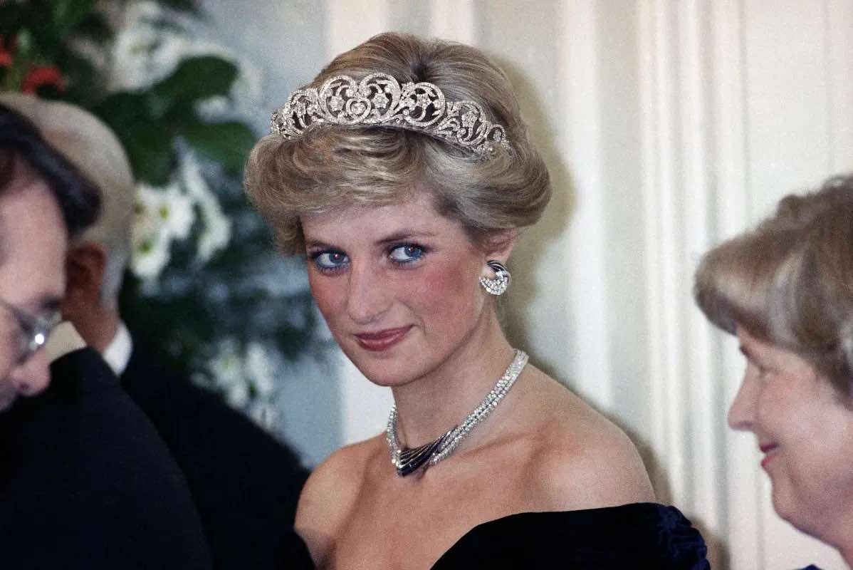 Công nương Diana trong tiệc chiêu đãi các thành viên hoàng gia Anh của cựu tổng thống Đức Richard von Weizsäcker vào tháng 11/1987. Bà sinh năm 1961,mất năm 1997. Ảnh: AP