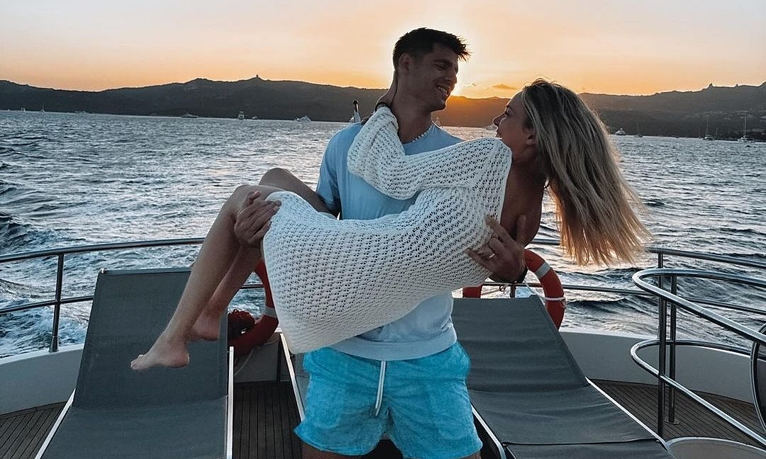 Morata và Campello tình tứ trong lần đi nghỉ hè cùng nhau tại Sardinia,Italy hồi cuối tháng 7. Ảnh: Instagram / Alvaro Morata
