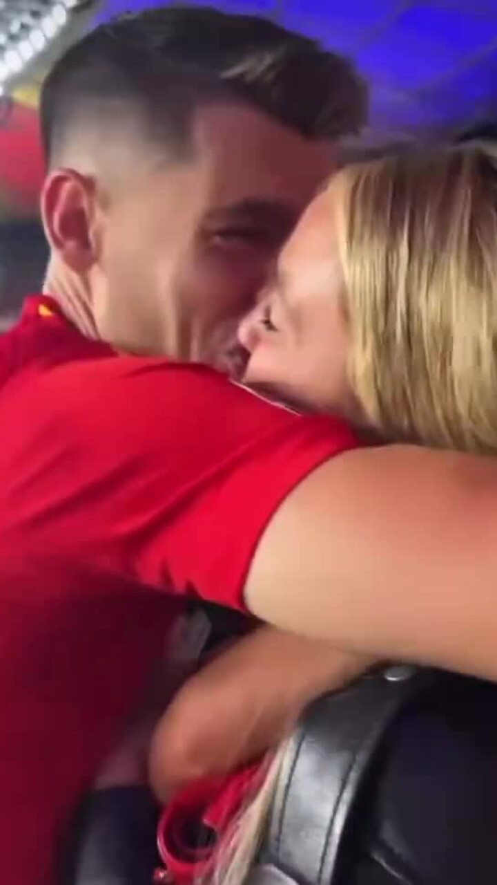 Morata ôm hôn Campello sau khi vô địch Euro 2024