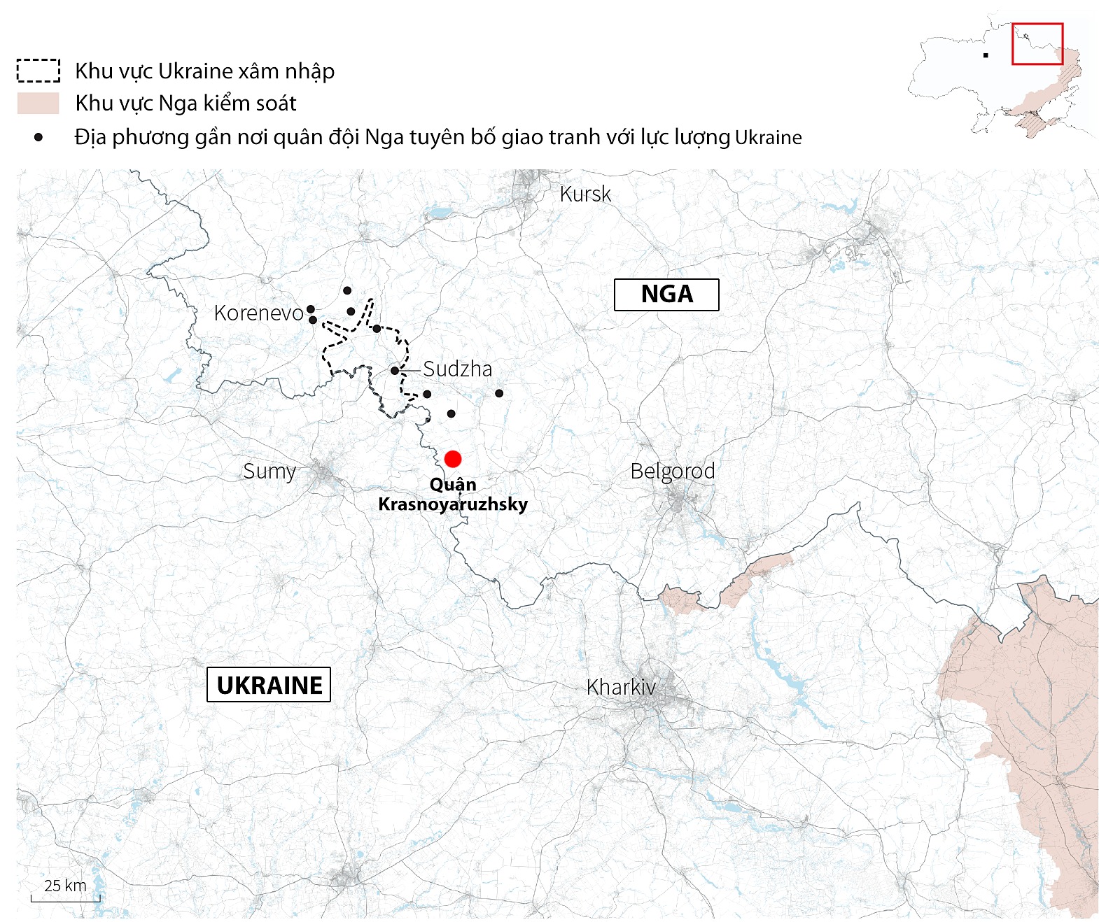 Khu vực giao tranh ở tỉnh Kursk. Đồ họa: AFP