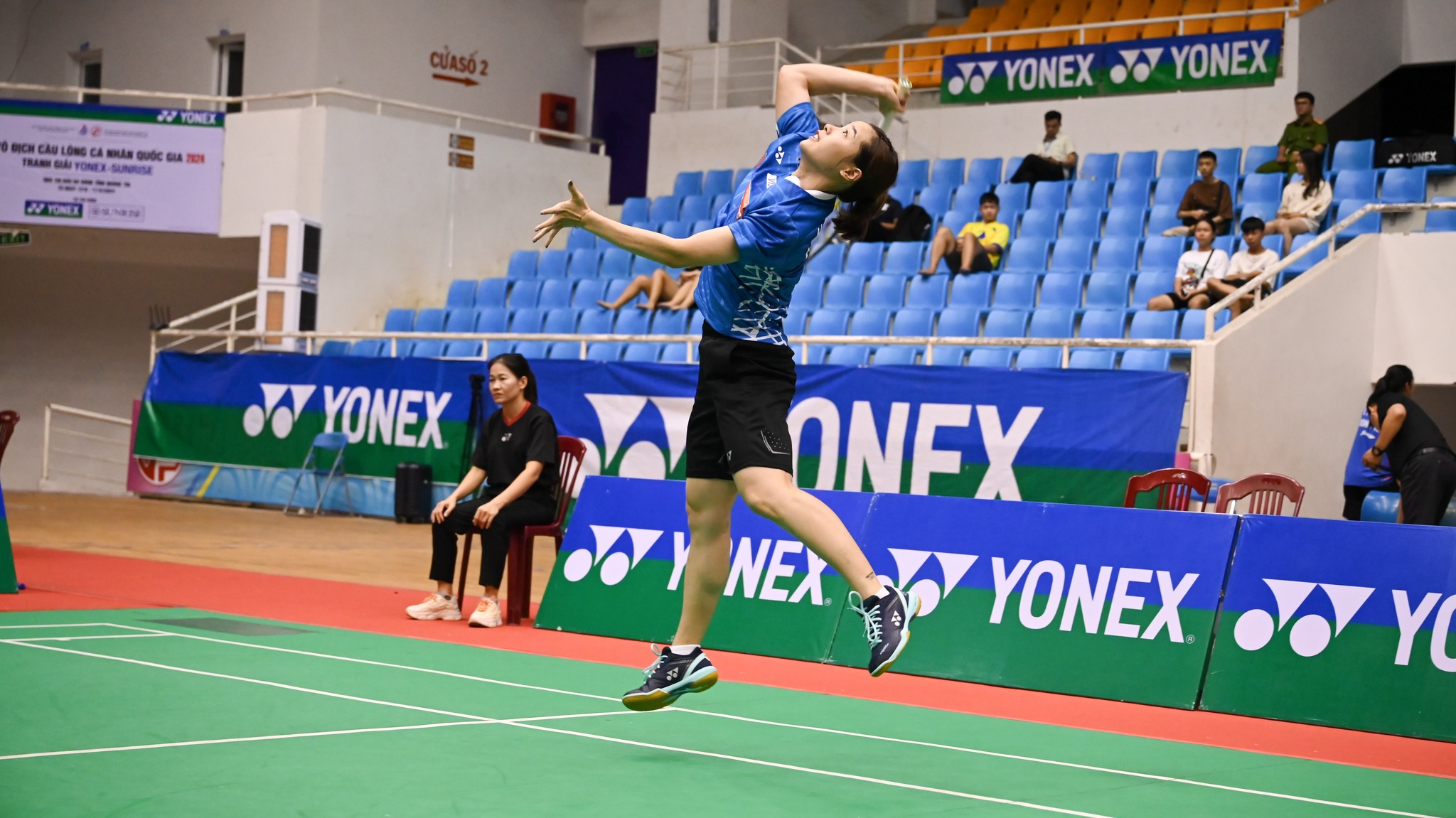 Tay vợt nữ số một Việt Nam Nguyễn Thuỳ Linh thi đấu ở Giải vô địch cầu lông cá nhân Quốc gia 2024. Ảnh: VBF