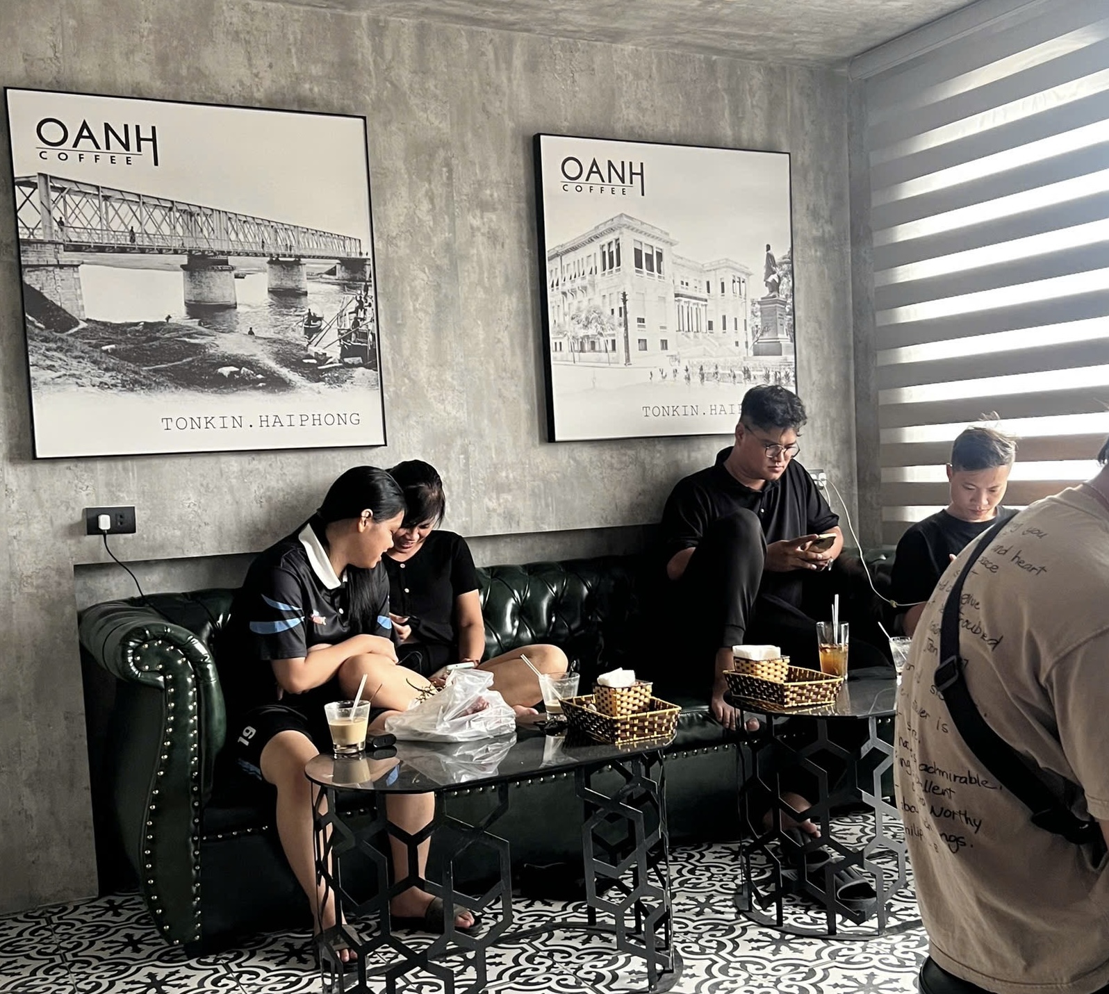 Từ sáng 8/9,Việt Hoàng,25 tuổi,ở quận Lê Chân đã ra quán cà phê ở quận Hồng Bàng,một trong những nơi được cấp điện trở lại sớm nhất,để sạc điện thoại,đèn pin và làm việc online. Hoàng cũng phải đợi khá lâu mới đến lượt bởi trong quán đã chật kín người sử dụng. Các quán cà phê khác quanh khu vực anh sống cũng tấp nập người tới ngồi từ sớm.