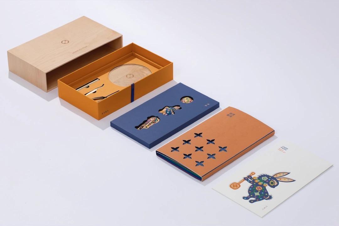 Louis Vuitton đem tới bộ tranh nghệ thuật cắt giấy đặc trưng của tỉnh Thiểm Tây,Trung Quốc. Theo BoF,việc này không chỉ hút khách VIP,mà còn giúp các nghệ nhân địa phương trong việc bảo tồn di sản văn hóa phi vật thể này. Năm ngoái,nhà mốt Pháp làm hộp bánh hình chiếc rương gỗ lấy cảm hứng từ truyền thống sáng tác thơ dịp Trung thu.