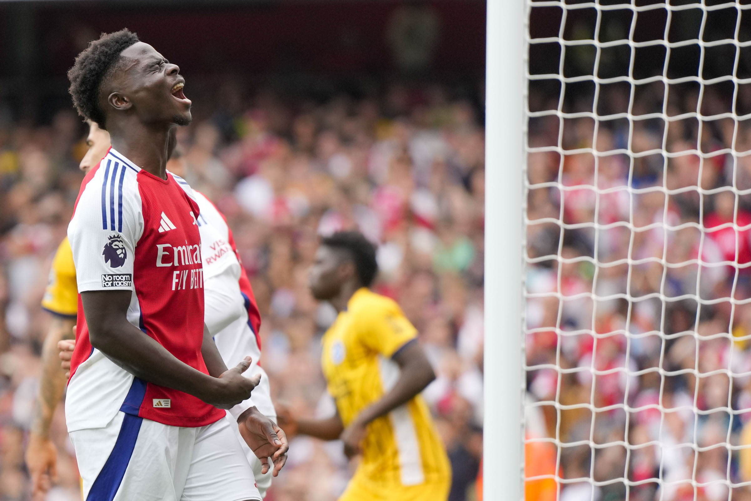 Tiền đạo Arsenal Bukayo Saka thất vọng sau khi hỏng ăn trong trận hòa Brighton 1-1 ở vòng 3 Ngoại hạng Anh trên sân Emirates,London ngày 31/8. Ảnh: AP