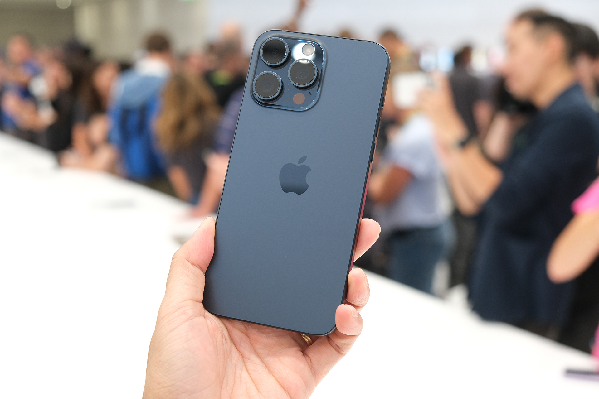 iPhone 15 Pro Max màu xanh. Ảnh: Tuấn Hưng