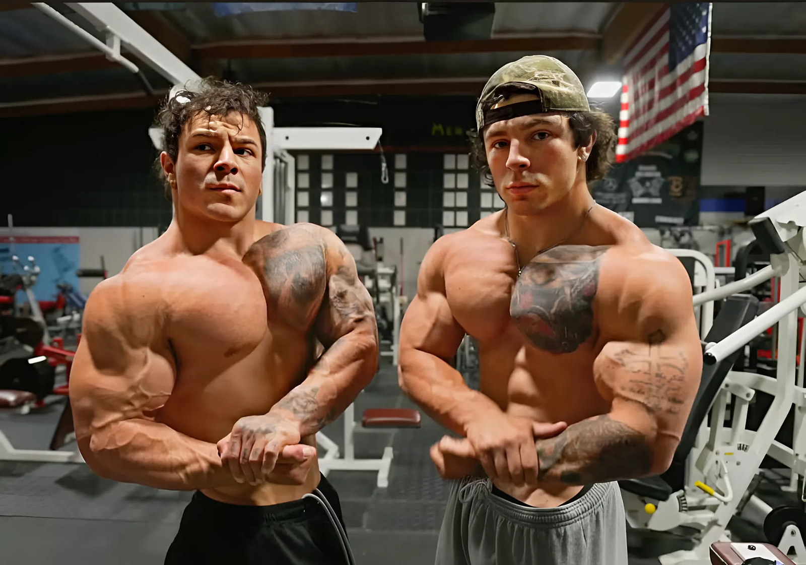 Hai người có tầm ảnh hưởng tự xưng là cặp song sinh trenbolone khoe cơ bắp trên mạng xã hội. Ảnh: The Tren Twin