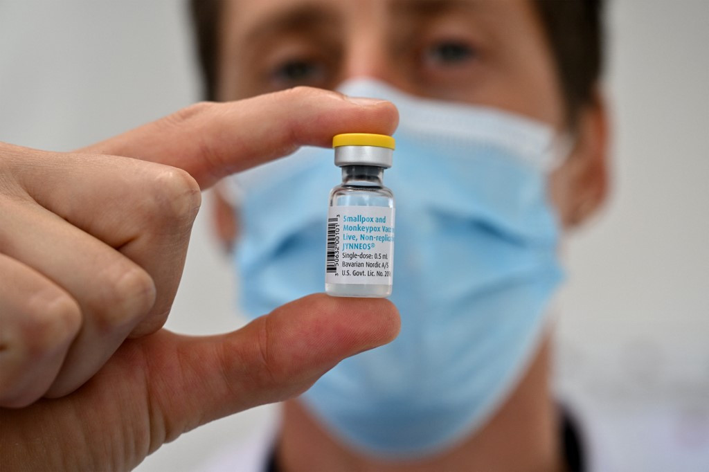 Một bác sĩ cầm lọ vaccine đậu mùa khỉ tại trung tâm thông tin miễn phí,dịch vụ chăm sóc sức khỏe và chẩn đoán (CeGIDD) ở Montpellier,miền Nam nước Pháp. Ảnh: AFP