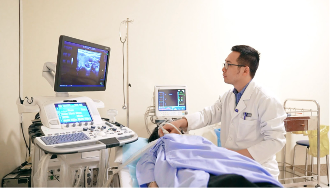 Bác sĩ Khánh siêu âm tuyến giáp cho một người bệnh. Ảnh minh họa: Bệnh viện Đa khoa Tâm Anh