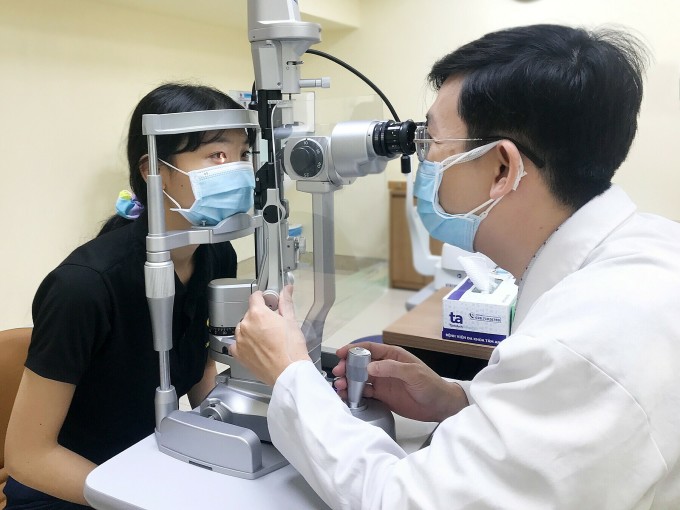Bác sĩ Tùng,chuyên khoa Mắt,Bệnh viện Đa khoa Tâm Anh TP HCM khám mắt cho người bệnh. Ảnh minh họa: Bệnh viện cung cấp
