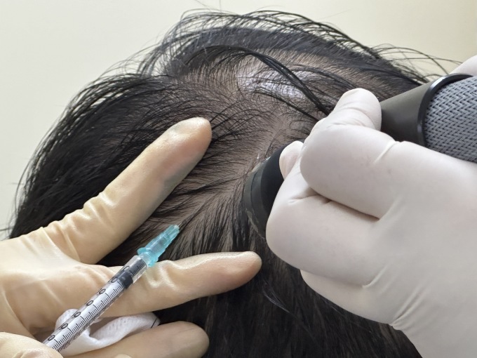 Bệnh nhân được tiêm thuốc kích thích mọc tóc tại Bệnh viện Đa khoa Tâm Anh TP HCM. Ảnh: Bệnh viện cung cấp