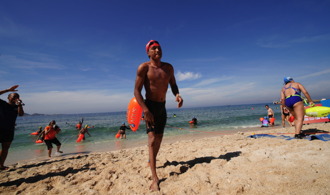 Hán Quang Thoại là một trong 11 VĐV hoàn thành giải bơi vượt biển Lý Sơn hồi tháng 6/2024. Ảnh: Lý Sơn Cross Island