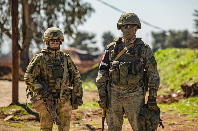 Quân nhân Nga đứng gác trong sân bay Qameshli tại tây bắc Syria năm 2020. Ảnh: AFP